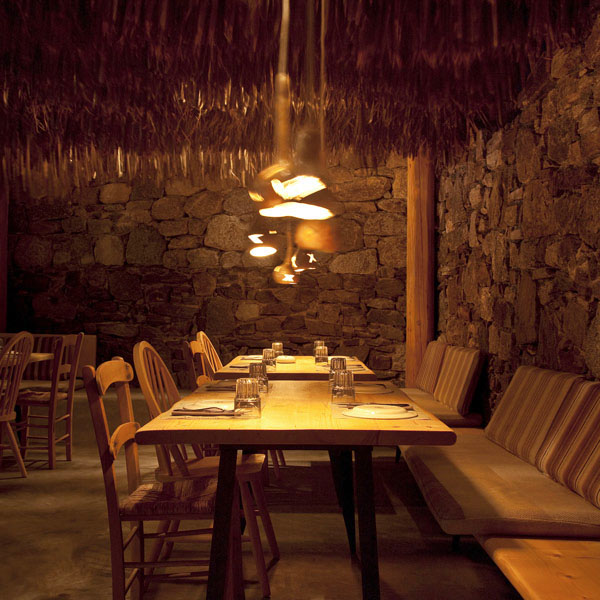 Situated on the sands of Ftelia Beach in Mykonos, Greece, Alemagou is a reinterpretation of a traditional building by k-studio. Inspired by Cycladic architectural elements such as whitewashed, smooth-edged houses and dry-stone walls that blend into the landscape, the contemporary design provides the property with a unique character. Natural reed thatch is used to allow air to circulate and keep the space cool.