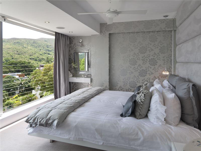 This award-winning architect designed home in Hong Kong exquisite views of the bay. All rooms also overlook the walled private garden. The home features a glass and rendered concrete finish staircase. The contemporary interior design throughout the house includes a stunning family room and custom designed walk-in closet. A home theatre system with projector and screen, and a built-in audio visual control centre are part of the sate of the art design. The master ensuite bathroom features rainshower and Balinese stone bathtub and double basins.
