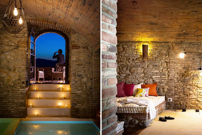 There is an indoor vaulted stone and brick pool room which has become a luxury all season spa.