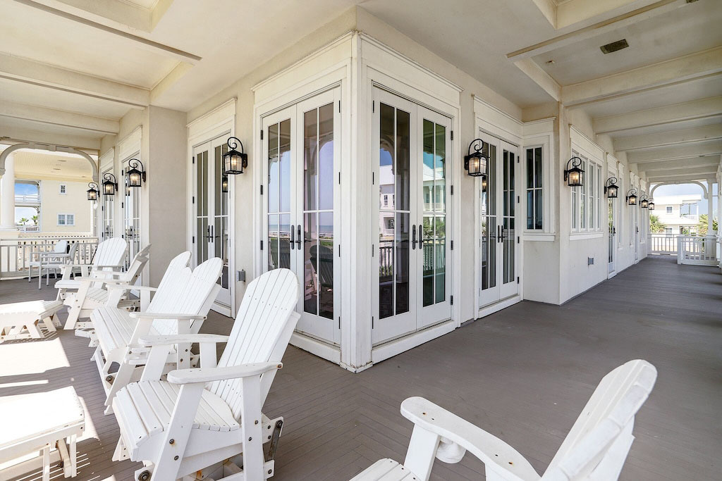This beautiful grand house occupies one of the most prominent lots in Beachtown, Galveston, Texas. The masterplanned community was designed by world-renowned town planners Duany Plater-Zyberk & Company, the creators of the New Town project Seaside, Florida as well as the coveted communities of Rosemary Beach and Alys Beach in Florida.