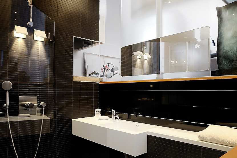 Located on the top floor of an attractive building in Stockholm, Sweden, this loft apartment has very high ceilings that goes up 16 feet. The massive book shelves in the living area is the focal point of the apartment. The loft features modern interior design with a very open floor plan.
