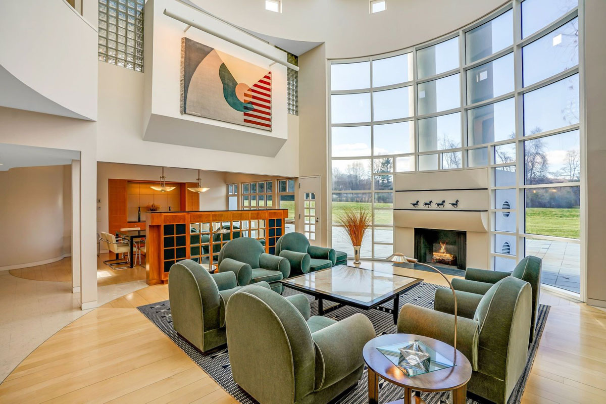 This dramatic modern house in Morristown, New Jersey is a masterfully-crafted showplace in the picturesque countryside.
