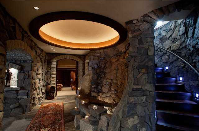 This breathtaking architectural masterpiece located in Canmore, Alberta, Canada is a world class estate in the exclusive gated community, The Cairns on the Bow. The estate is a private castle in the Rocky Mountains offering 11,058 square feet of living space. There is a hidden staircase that leads down to a stone-walled grotto with waterfall and gated wine room. The exquisite residence has an asking price of CAN$12 million.