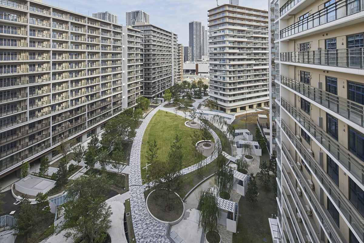 The picturesque Harumi waterfront district of Tokyo, Japan is the site of the Athletes’ Village for the Tokyo 2020 Olympic Games. The location offers scenic views of Tokyo Bay and the famed Rainbow Bridge.