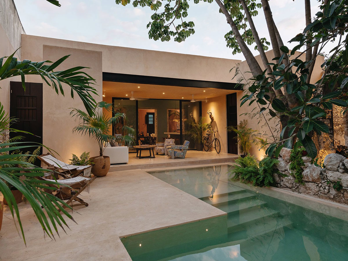 Yucatecan Colonial House with Modern Central Pool Courtyard