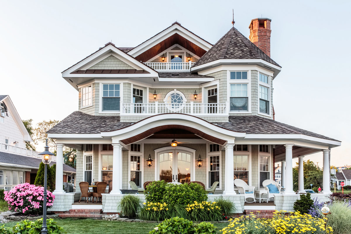 This one of a kind riverside house sits on a corner lot in Avon-by-the-Sea, New Jersey. The location provides an opportunity to create curb appeal from both the river and the road.