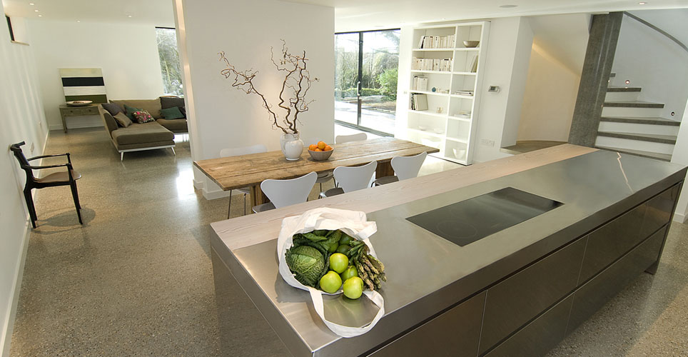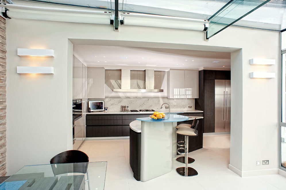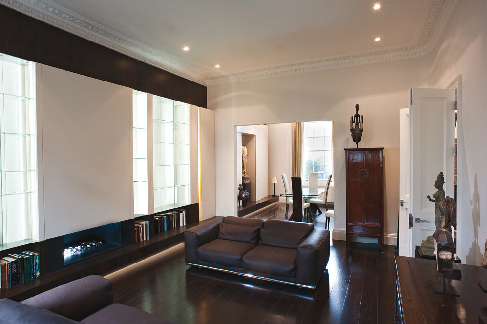 This contemporary triplex in London’s South Kensington has been completely refurbished by Markam Associates. The stylish modern home also has an indoor swimming pool and a new conservatory.