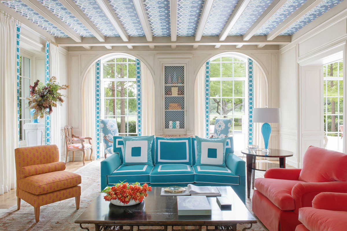An elegant traditional French style home in Dallas, Texas gets a colorful interior update with bold splashes of color and pattern. The eclectic decor is a Parisian paradise with Caribbean vibe.