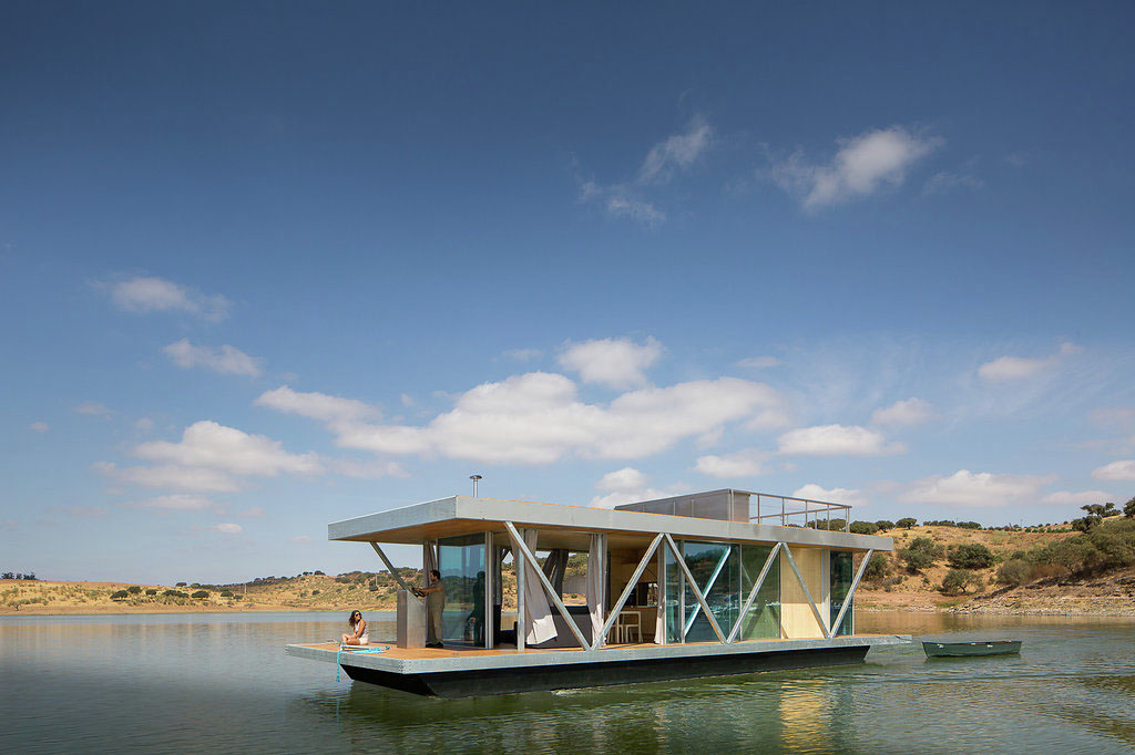This modular floating house in Alqueva, Portugal designed by Friday SA has been designed with low environmentally impactful materials and technologies that reduce its carbon footprint and lower its energy needs.