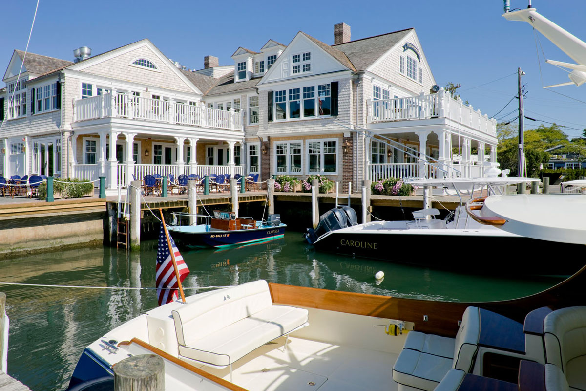 Perched at the end of Main Street with sweeping views of the harbor in Edgartown, Massachusetts, The Atlantic and Boathouse stands as a remarkable example of shingle-style architecture infused with nautical elegance.