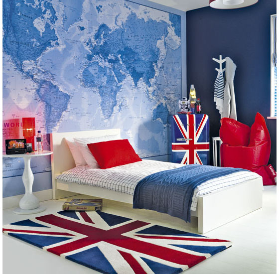 Here are a few British interior decorating ideas to celebrate the marriage of Prince William and Catherine Middleton! Cool Britannia bedrooms with Union Jack bedding and rugs offers patriotic atmosphere. Classic British bathroom has a simple and modern flair. Eclectic English style living rooms with floral curtain, wooden chest and Laura Ashley sofa provide that vintage look.