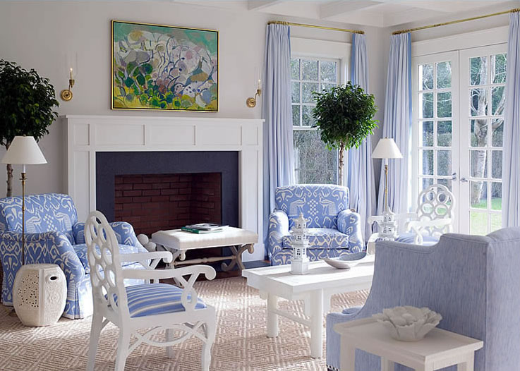 Breezy color schemes blue and white provide a light summer coastal feel to any room. The color combination is elegant and nautical.