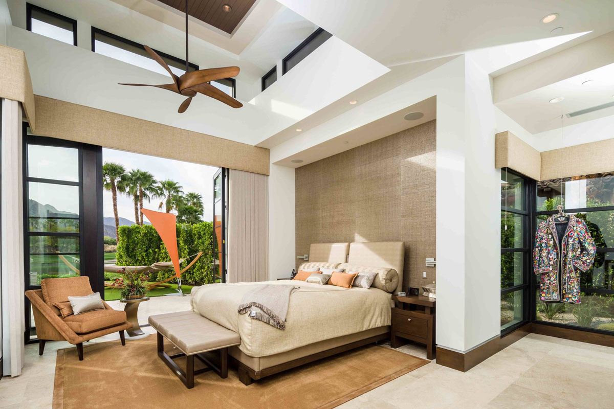 The elegant home in the desert also includes a swim-up indoor/outdoor pool bar.