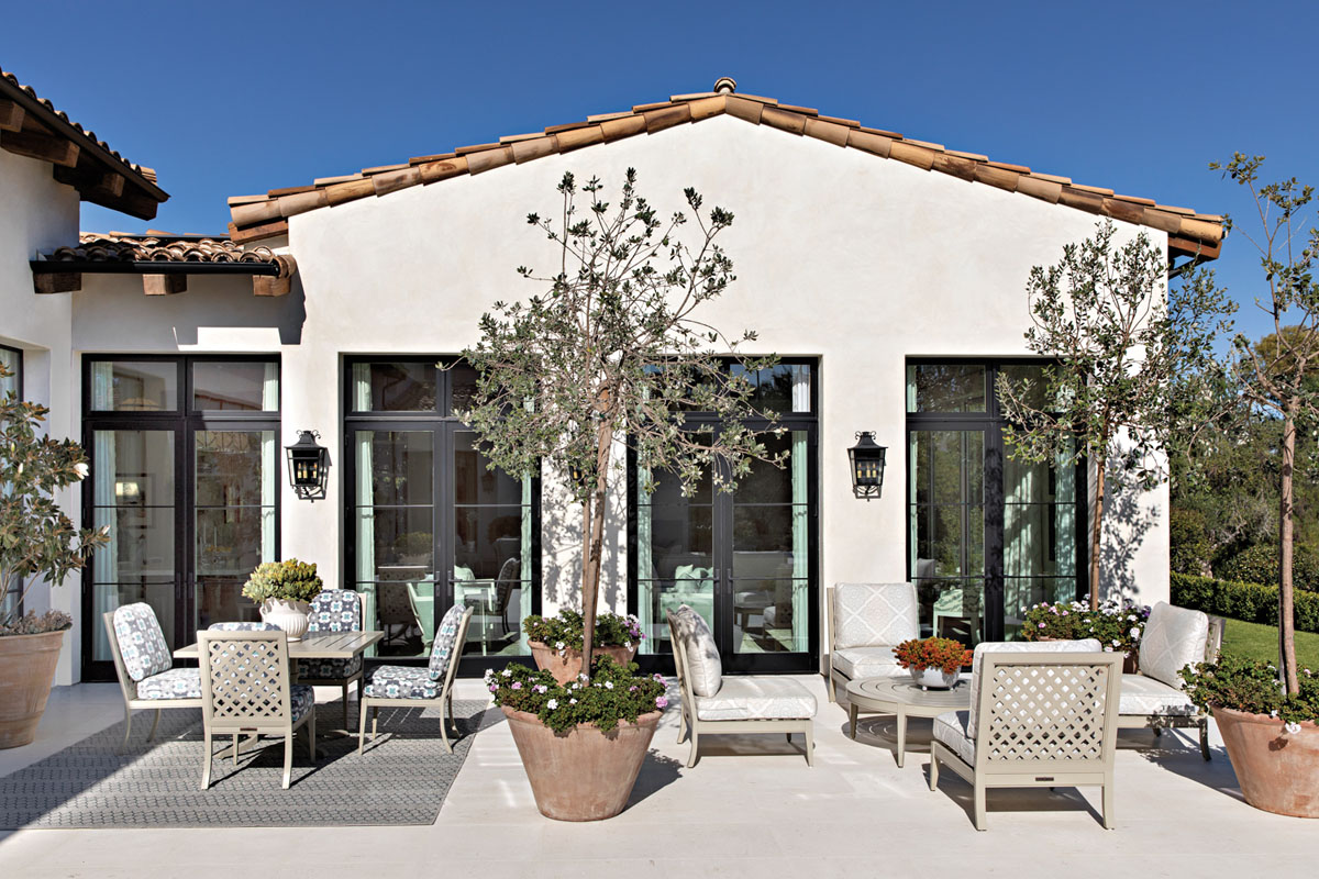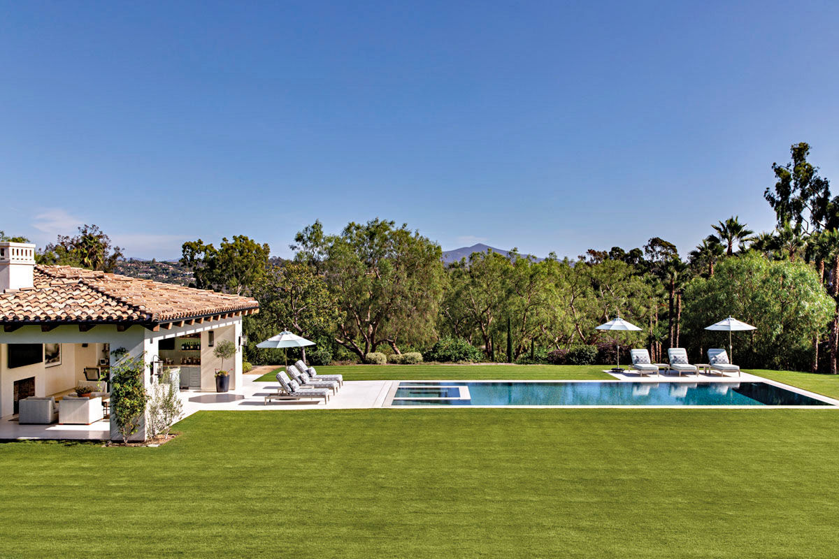 This renovated home on an estate in Rancho Santa Fe, California features traditional Spanish-style architecture with a modern edge.