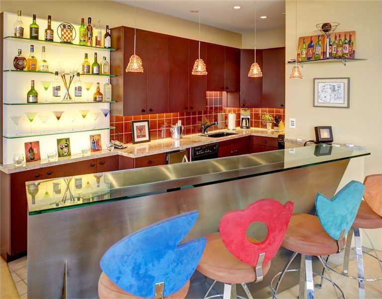 The entertainment area in the lower level features a full bar and kitchen area, gas log fireplace, dance floor area with professional DJ booth, lighting and even a fog machine! There is also a Tuscan style wine cellar on this level.