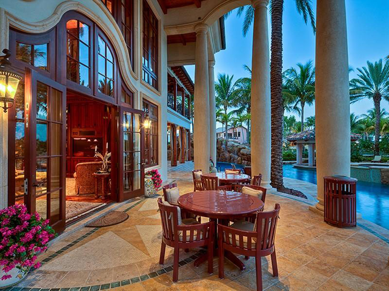 A resort style outdoor entertainment area has a 102 foot long swimming pool with a waterfall, pool bar and Mediterranean style verandas. The property also features its own docks and views of the intracoastal waterways.