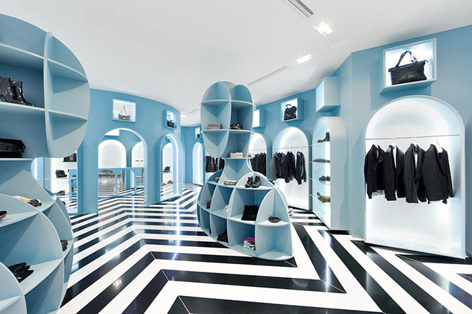 The HITGallery is an elegant boutique located in the Times Square shopping center in Hong Kong. Designed by Italian architect and designer Fabio Novembre, the surreal atmosphere of the concept store is inspired by artist Giorgio De Chirico.