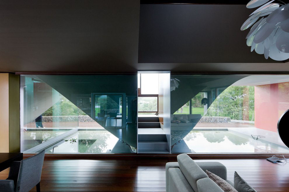 This modern single family home on the island of St. Miguel in the Azores, Portugal has a very unique design by Bernardo Rodrigues Arquitecto. The shape of the house is inspired by the wind, the climate and the natural environment of the region. The idea is to bring the outside inside regardless of the weather condition. The house is a collection of stacked structures that is both functional and a freedom of expression.