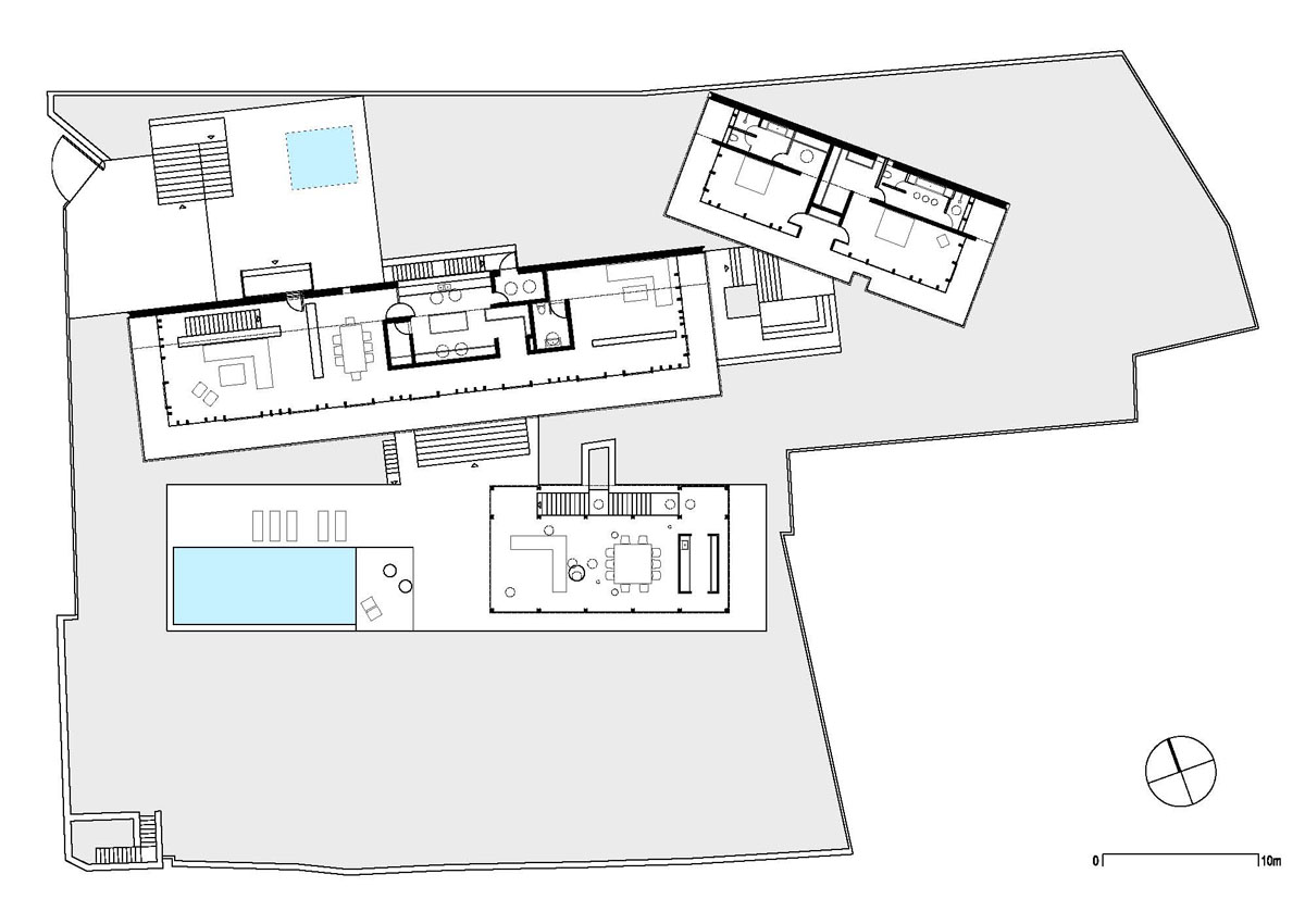 This contemporary home located in Valle de Bravo, Mexico is designed to respect nature. The site is surrounded by pine and oak trees with spectacular views of Lake Avándaro. Designed by Parque Humano, the house takes full advantage of the slope and the existing vegetation to create visual connections at different elevations.