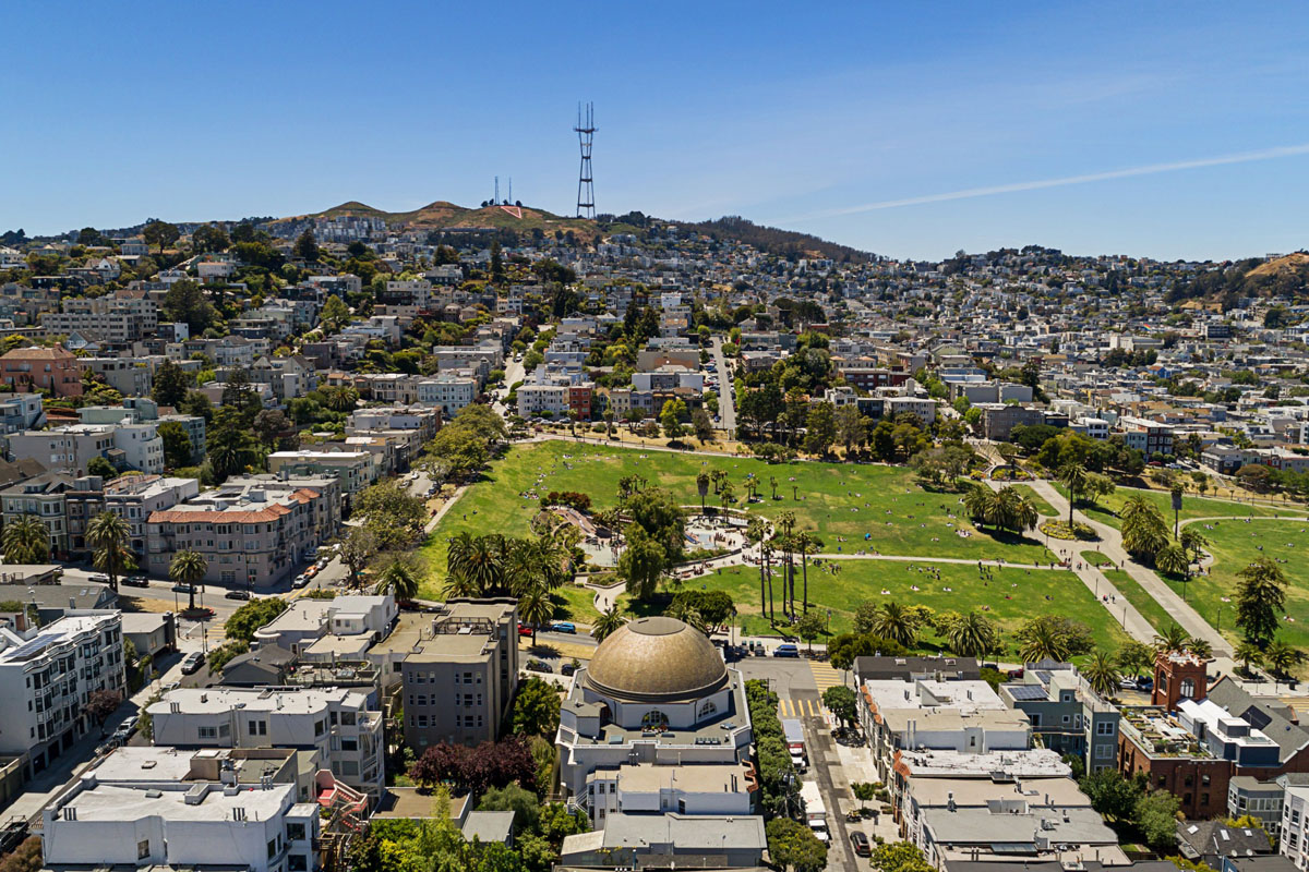 Located across from the lush palm trees of Dolores Park, the grand residence offers a unique blend of history and modern luxury.