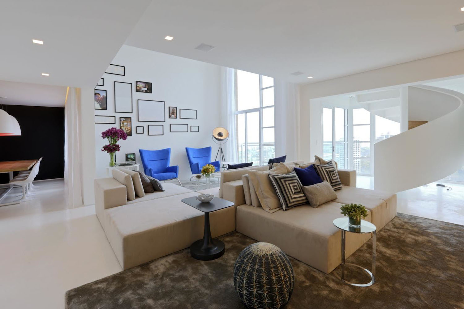 Located in the district of Panamby in São Paulo, Brazil, this minimalist duplex apartment was remodeled by architect Fernanda Marques.