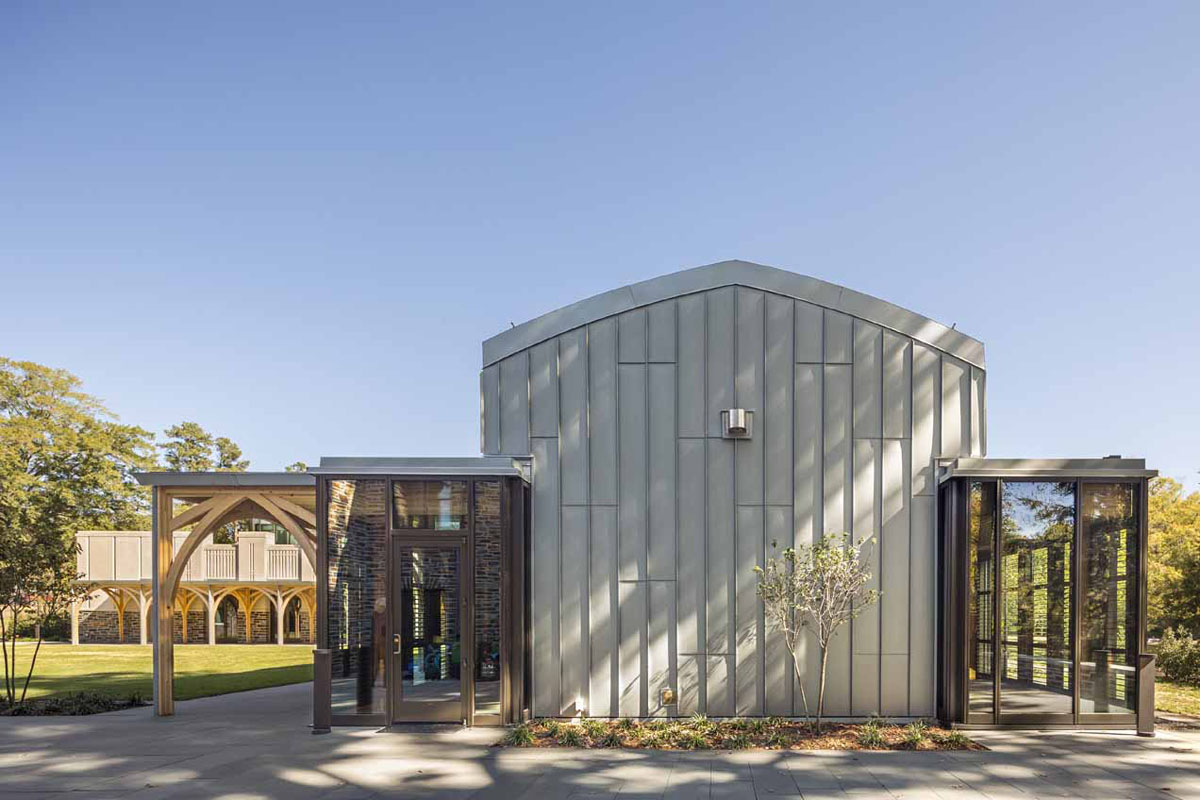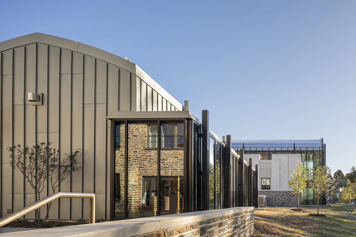 Duke University’s new Karsh Alumni and Visitors Center in Durham, North Carolina is a striking building with modern glass and stone walls that hint at Gothic traditions.