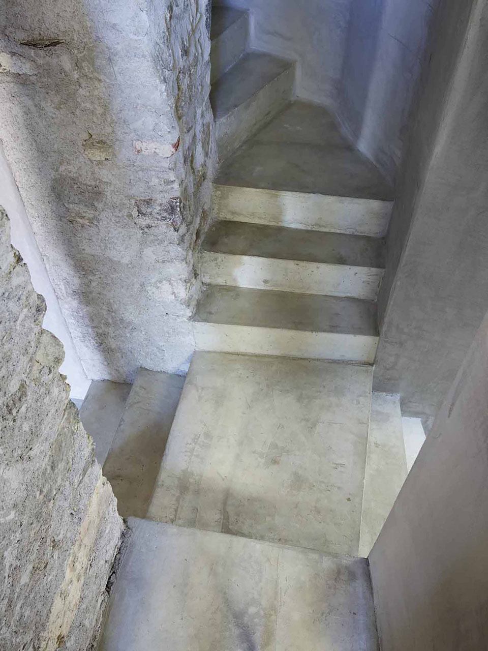 Much of the original stone masonry was preserved while the interior wooden beam floors were replaced with concrete floors, which also reinforce the old walls of the building.