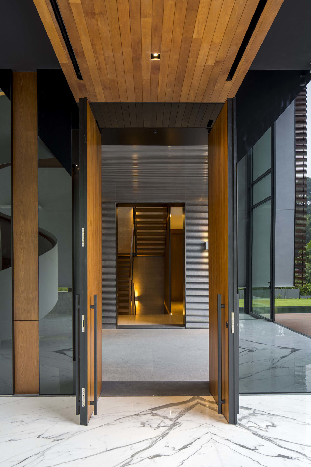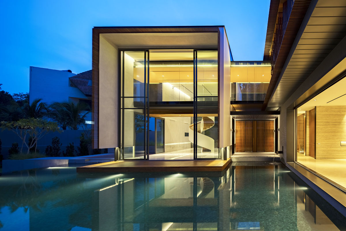 Modernist Glass House in Singapore with a Dramatic Spiral Staircase