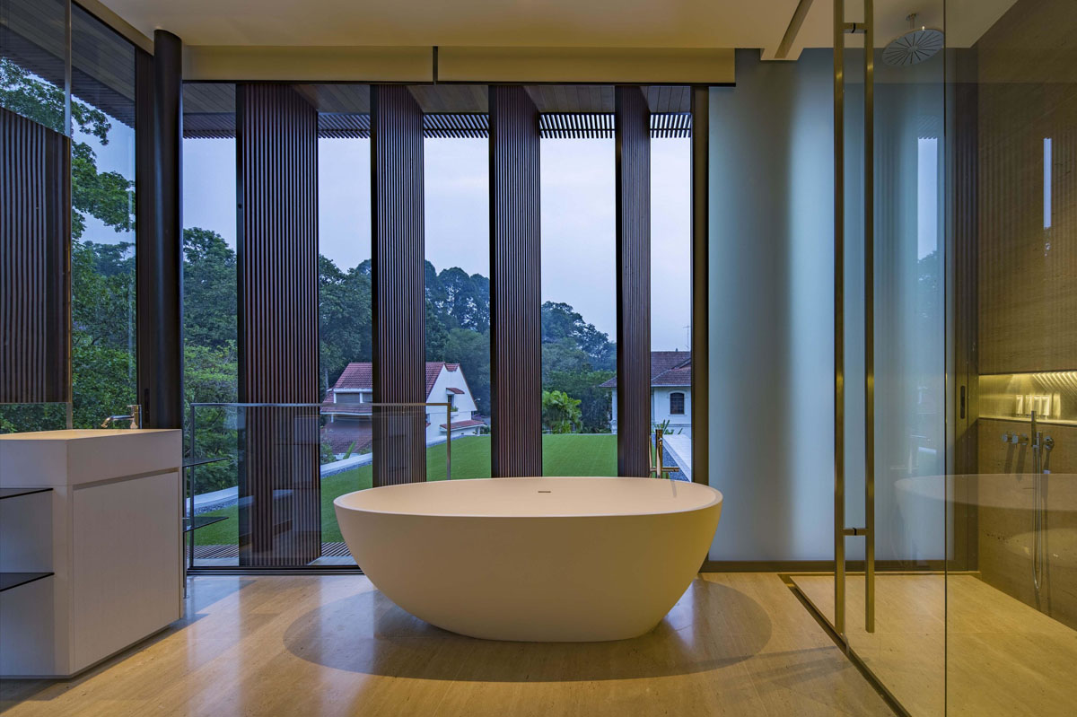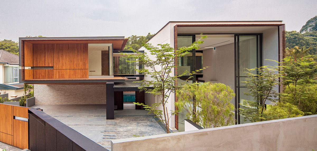 This award-winning Singapore home designed by RT+Q Architects was influenced by modernist architecture with its minimal form and material palette.