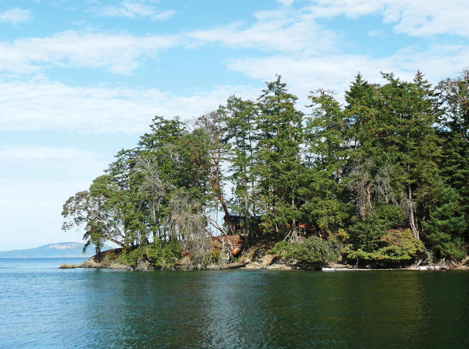The circular nature of this timber framed home located on Sidney Island, British Columbia, Canada creates a protected courtyard that keeps the harsh ocean wind away from the outdoor sanctuary.