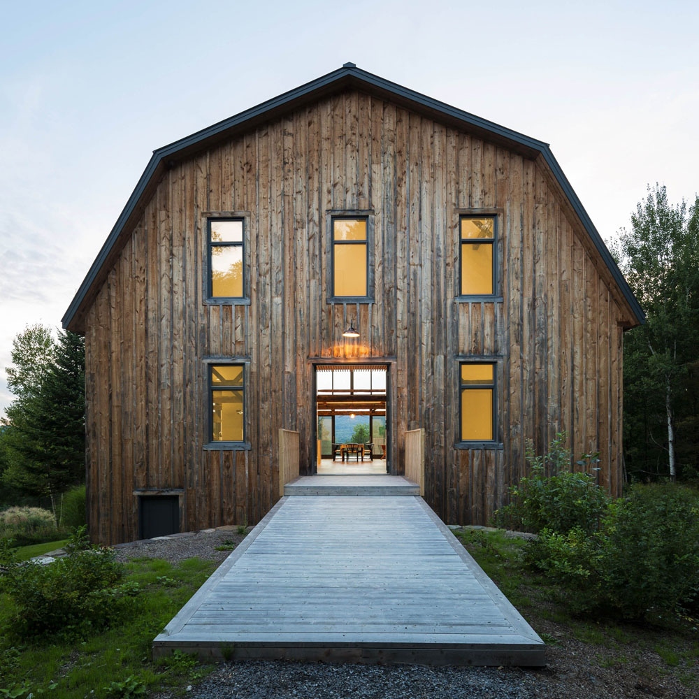 An ancient barn at the foot of Owl’s Head Mountain in Potton, Quebec, Canada was transformed into a modern rustic country retreat.