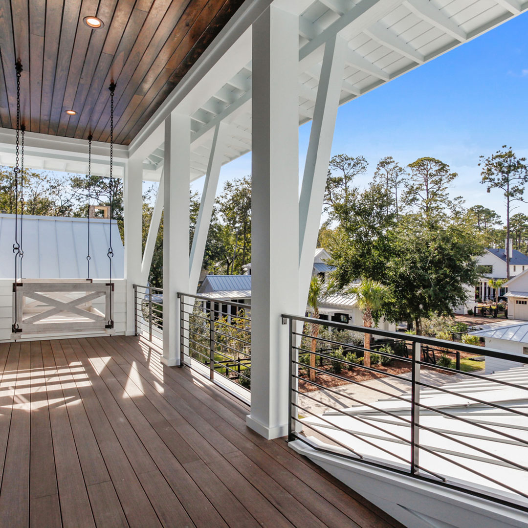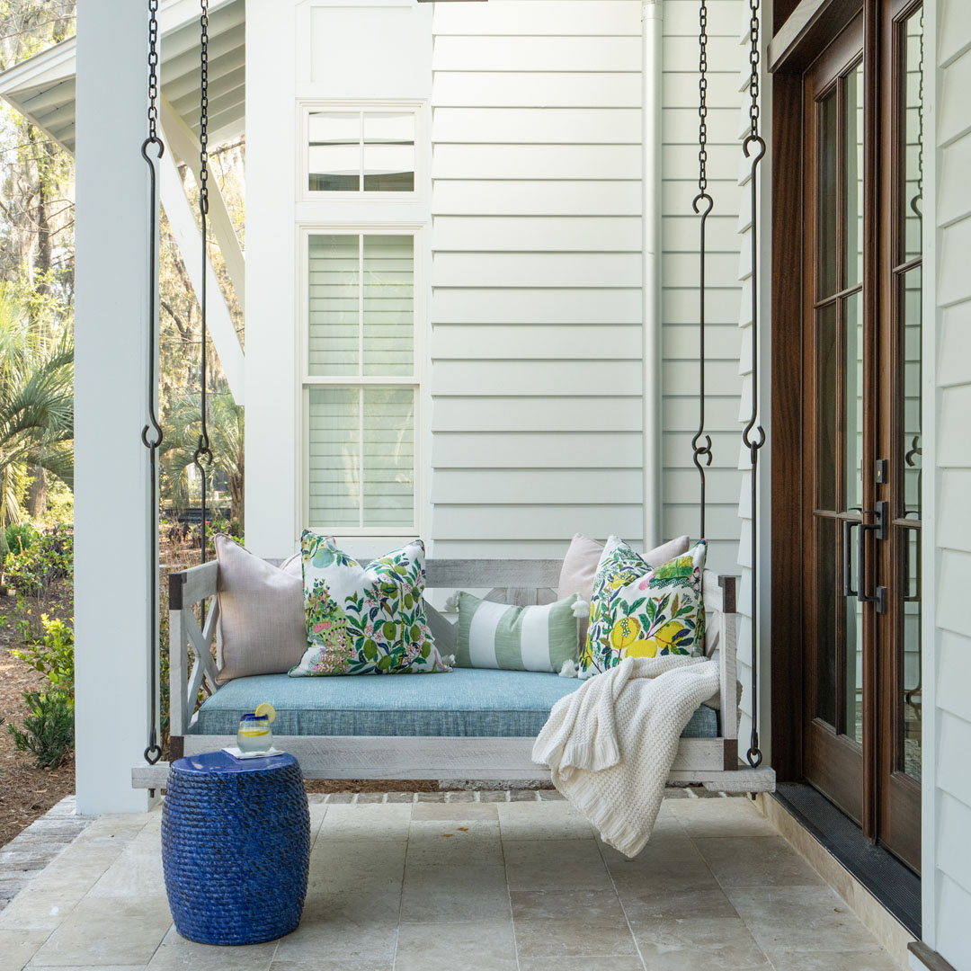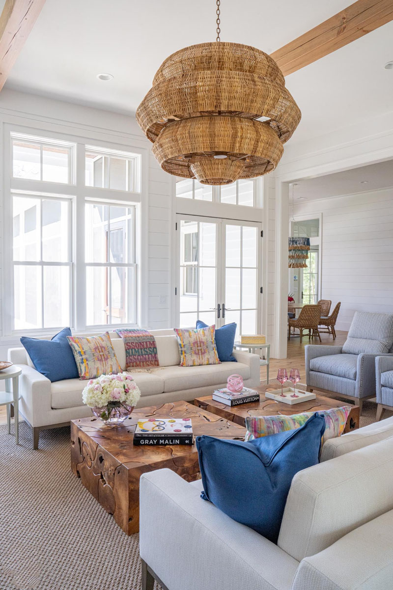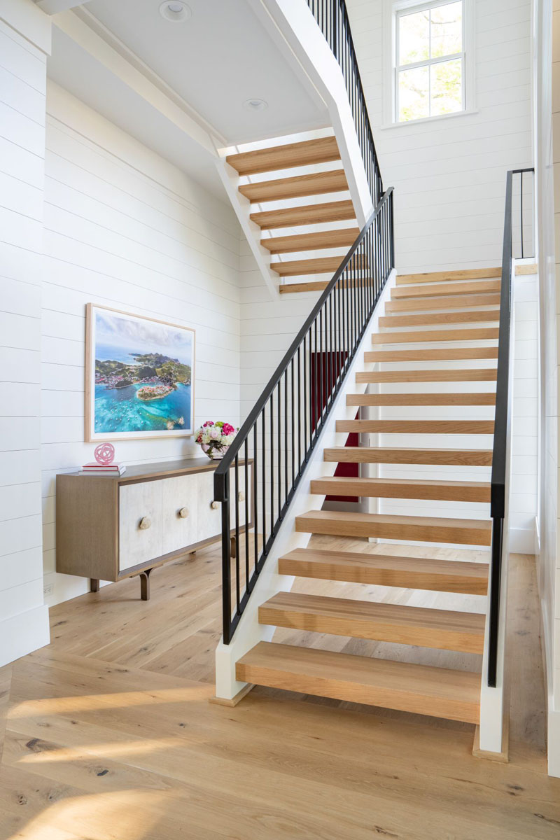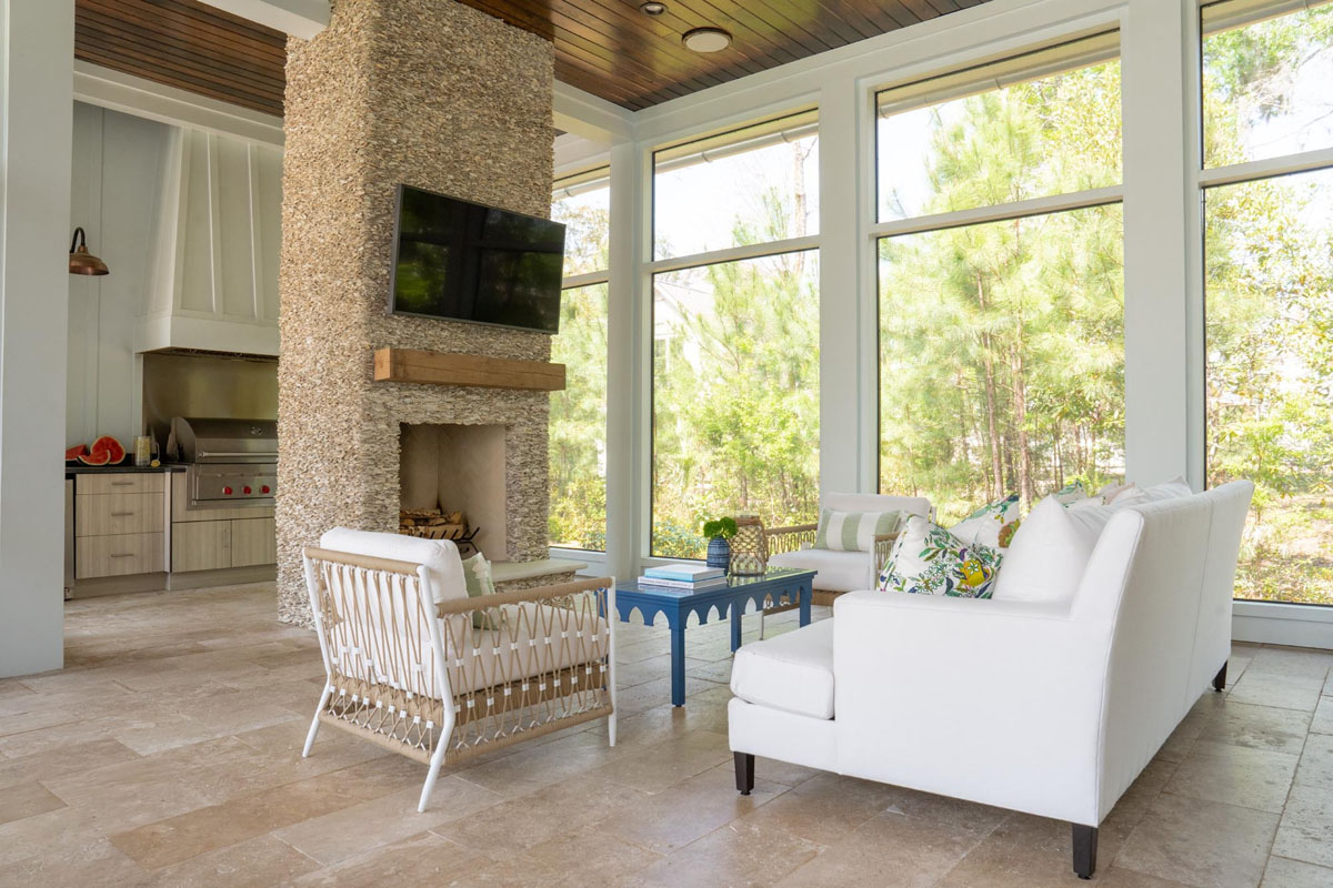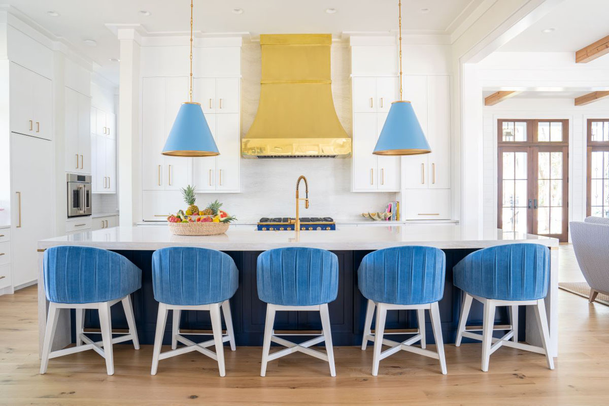 Designed by Court Atkins Group and built by H2 Builders, the home’s exterior is a captivating blend of classic Lowcountry architecture and modern design. Prominent rooflines, graceful columns, and a striking glass stair tower are just a few of the architectural elements that make this home truly unique.