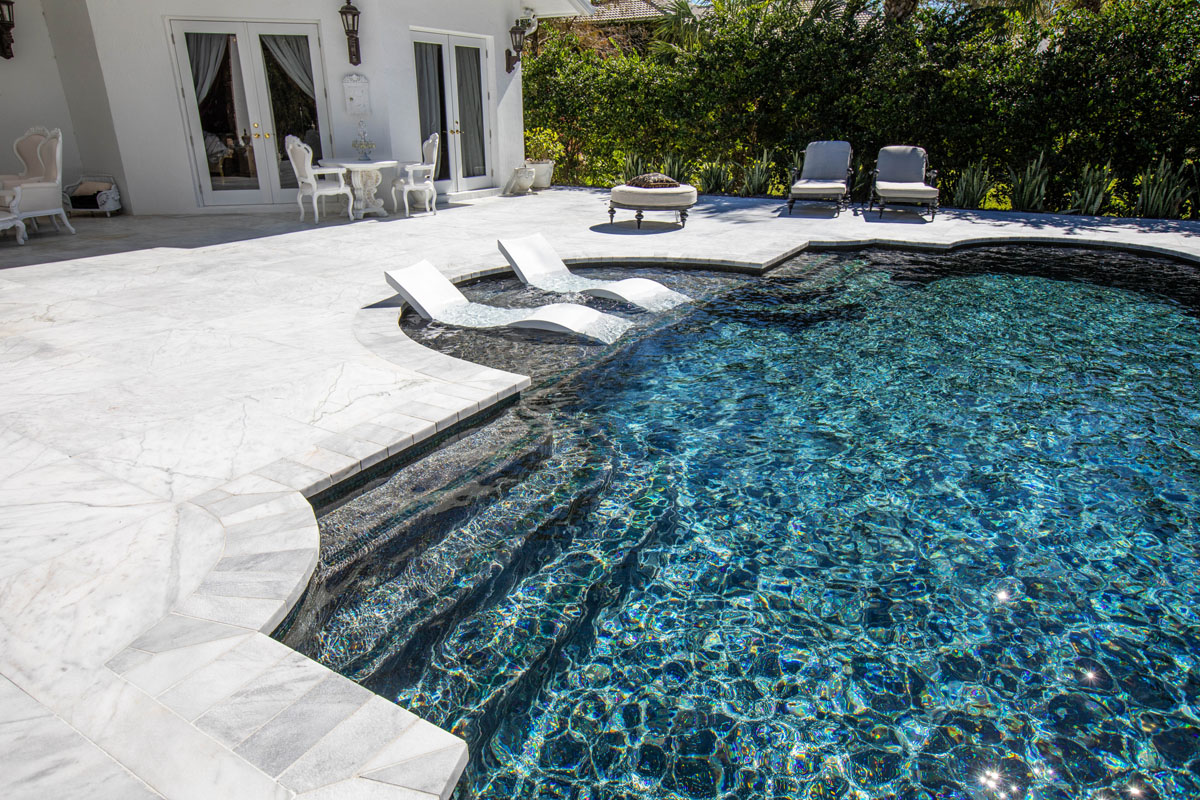 Roman Geometric Swimming Pool and Spa with Marble Deck