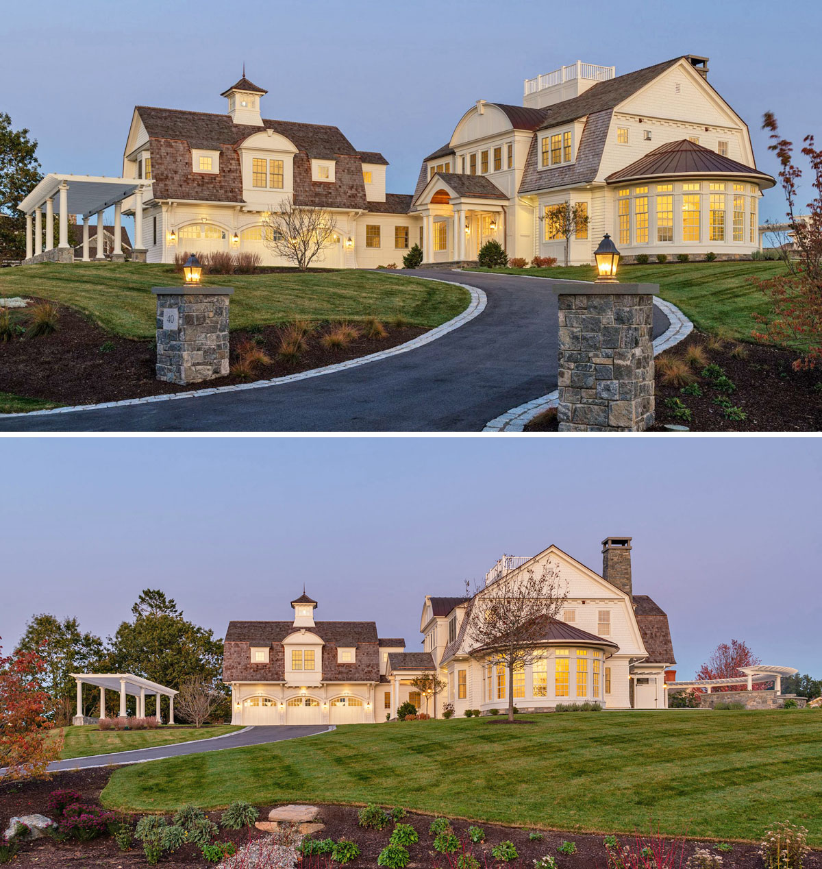 Perched on a gentle elevation in Rye, New Hampshire, this shingle style coastal home features a gambrel-style roof, a traditional widow’s walk and a charming cupola, echoing the classic seaside cottage vibe.