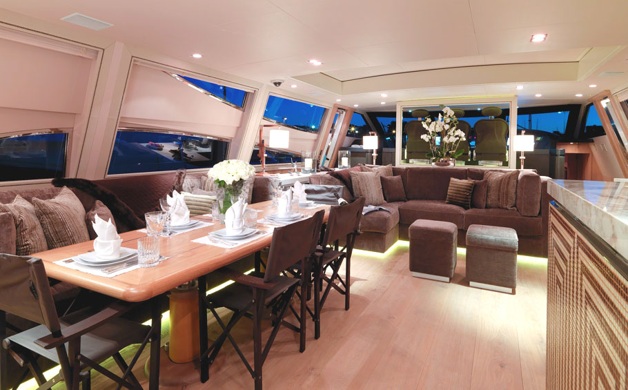 Luxury motor yacht “Cheeky Tiger” has a stylish modern look with interior design created by Tara Bernerd. This 34 meter (111 foot) yacht features 4 cabins, a comfortable alfresco dining area and an interior open top entertaining area.
