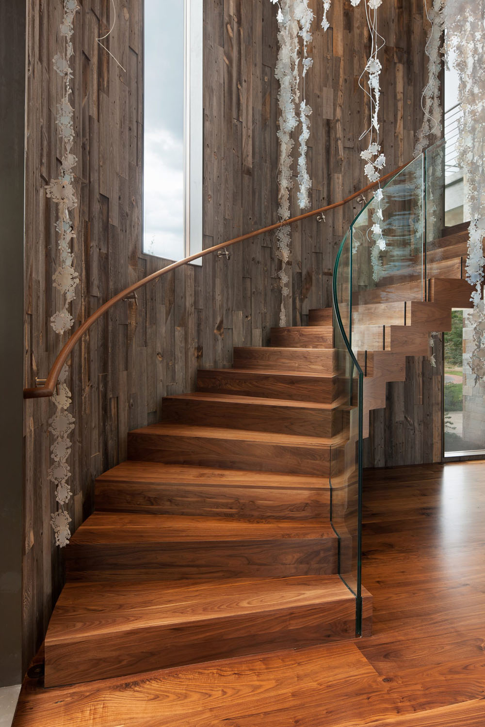 A geothermal ground loop system and 58 kW solar PV array enable the 15,000 sq. ft. residence to maintain all heating and cooling needs through a renewable energy source.