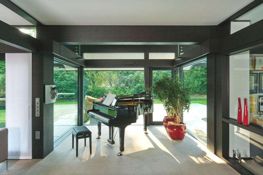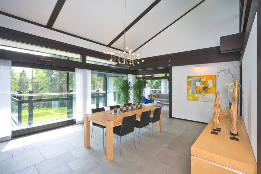Darien House in Cobham, Surrey, England is a modern prefabricated home by German architecture firm Huf Haus that offers the ultimate in contemporary living.