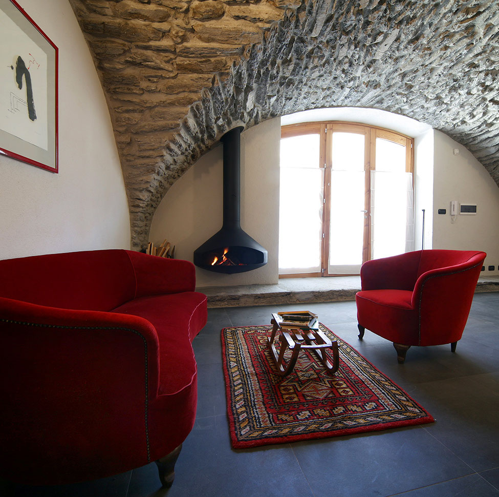 Studioata took on the project to adapt modern apartments housed in 18th century historical mountain huts in Pragelato, in the Province of Turin, in Val Chisone, Northern Italy. The traditional architecture is preserved with stone vaulting, limestone tile floor and natural wood, which is blended with modern alpine decor.