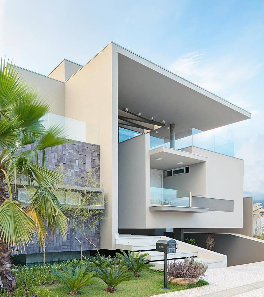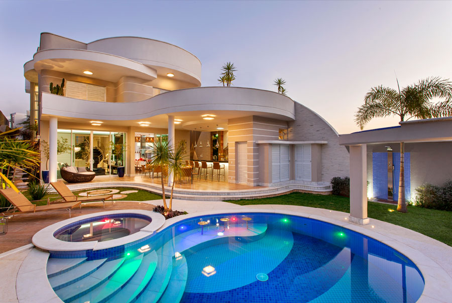 This architecturally well-crafted house in Brazil designed by Achilles Nicholas Kílaris Arquiteto has a beautiful contemporary facade with curved lines and organic forms.