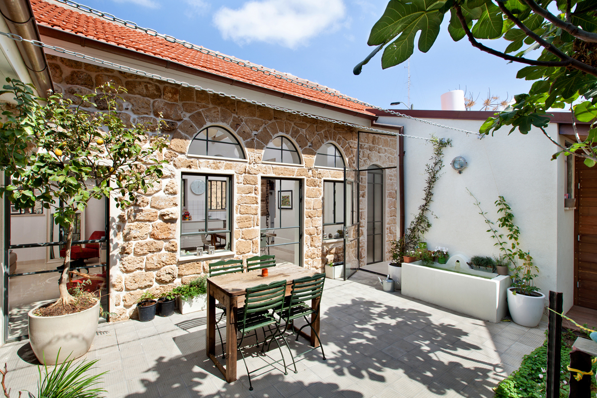 This private house in Safed, Israel was a preservation and regeneration project by Henkin Shavit Architecture and Design. The original old stone building in the shape of the Hebrew letter “Chet” surrounds an inner courtyard.