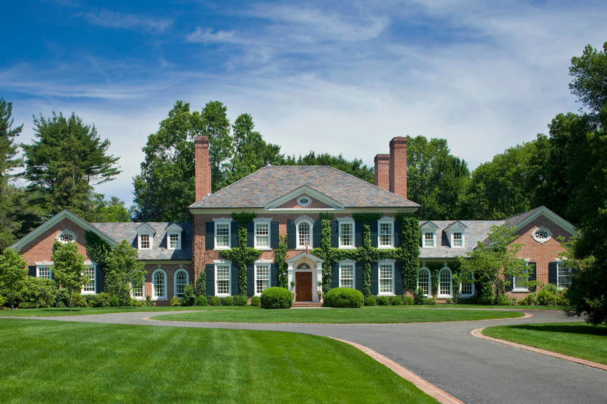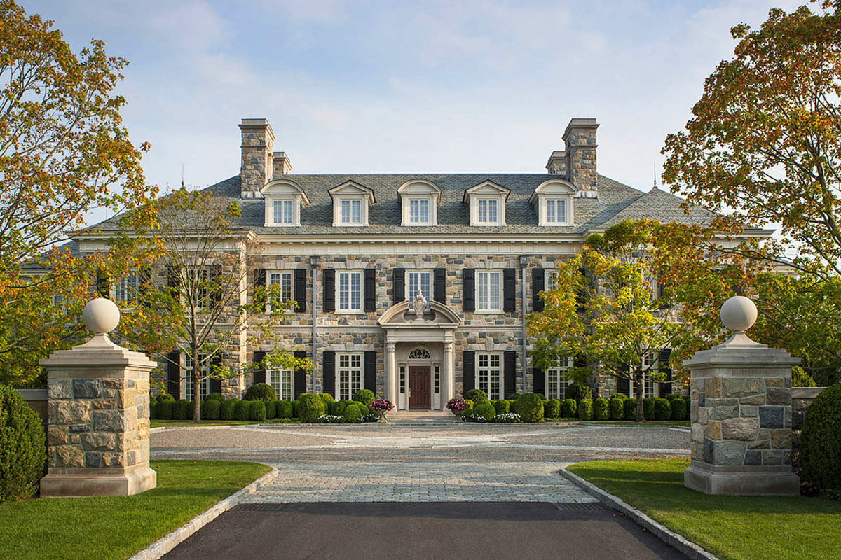 Greenwich, Connecticut – This elegant stone house on a sprawling estate in Greenwich draws inspiration from the classical architecture of Georgian houses at the turn of the twentieth-century.