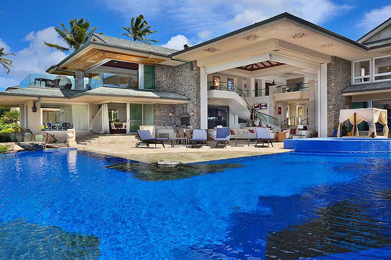 Jewel of Maui is a stunning beachfront estate situated on a white sand beach in Kapalua on the island of Maui, Hawaii. This opulent property has been featured on the TV show Lifestyles of the Rich and Famous. Interior designer Steven Cordrey created a contemporary tropical paradise with art treasures and handcrafted furnishing around the world.