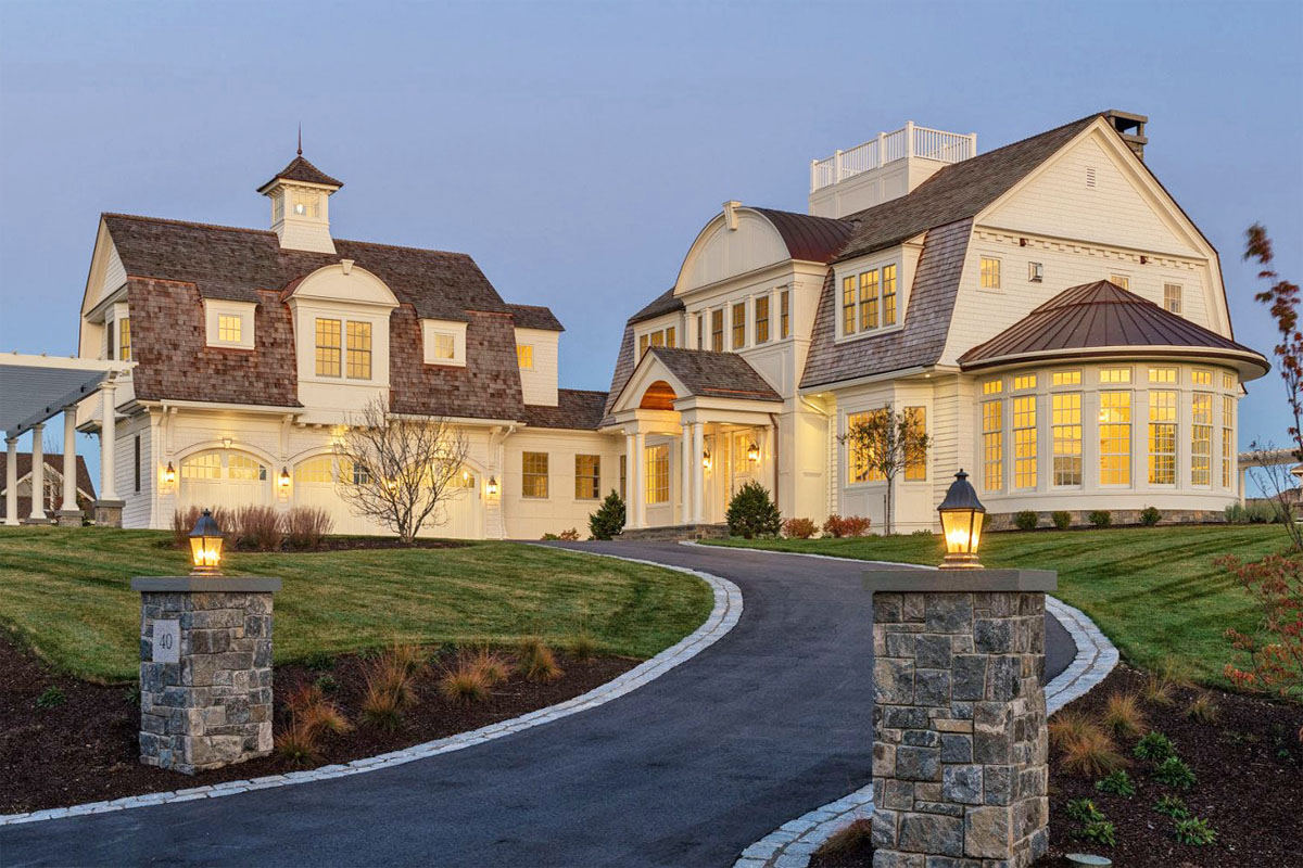 Perched on a gentle elevation in Rye, New Hampshire, this shingle style coastal home features a gambrel-style roof, a traditional widow’s walk and a charming cupola, echoing the classic seaside cottage vibe.