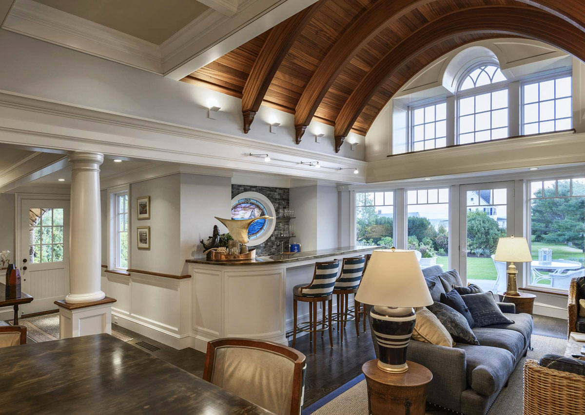 This coastal style home in North Hampton, New Hampshire features a nautical motif throughout the house inspired by its proximity to the ocean.