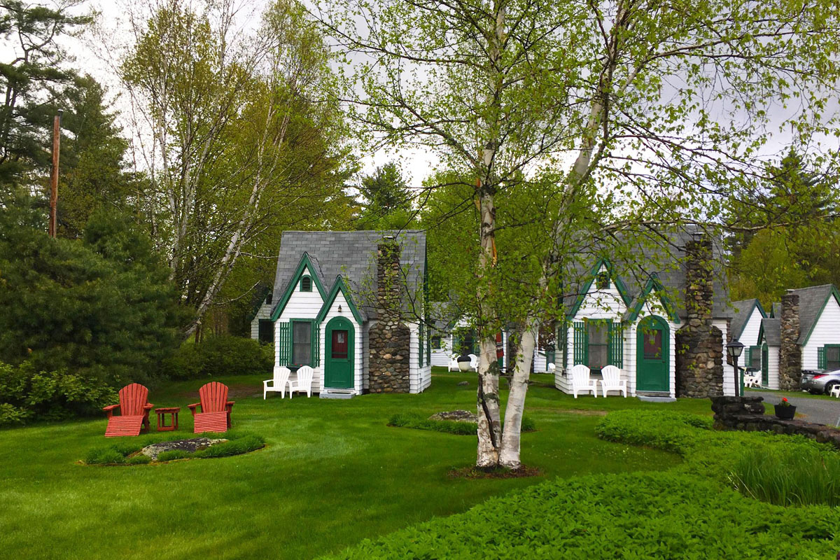 Hearthside Village Cottage Motel in Bethlehem, New Hampshire in the White Mountains is a nostalgic fairytale village with tiny tourist cottages.