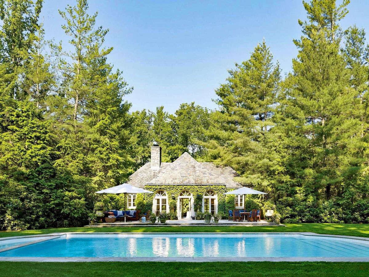Designer Ralph Lauren and his wife live on a 250-acre estate in Bedford, New York that is an English-inspired American home. The 17,000 sq. ft. residence is a Norman-style stone house originally built in 1919.