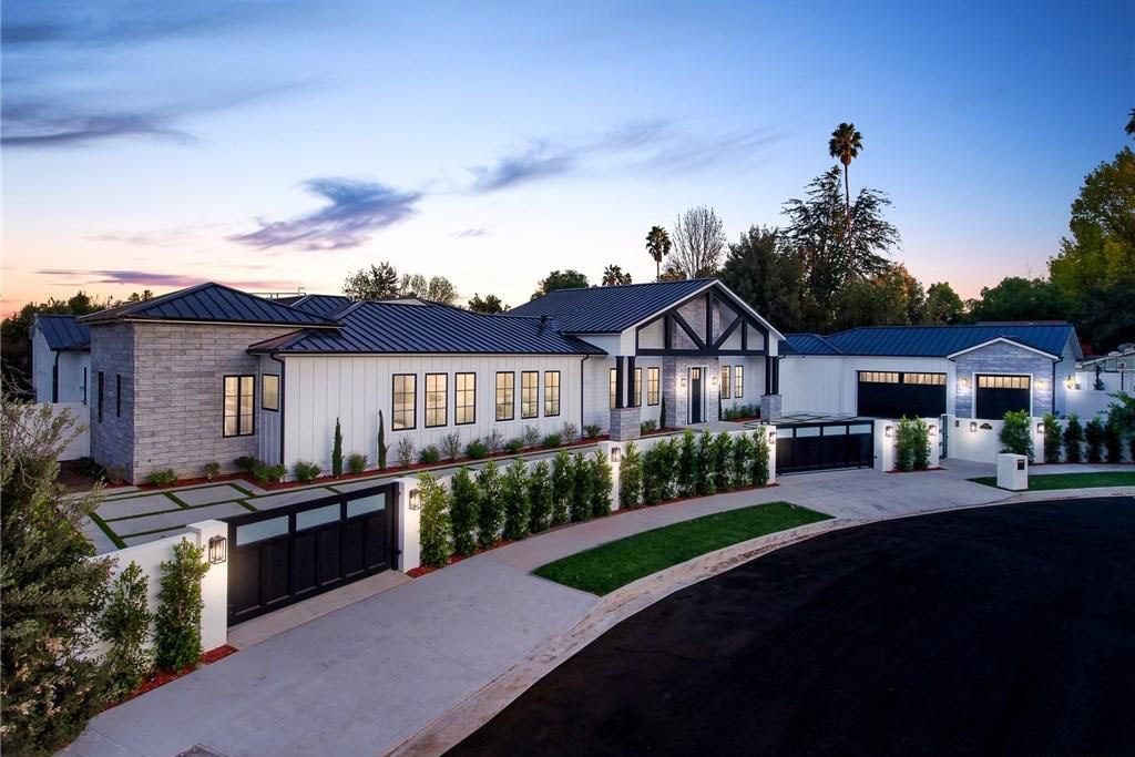 This sprawling bungalow style modern farmhouse in Encino, California captures the casual elegance of a luxury country estate.