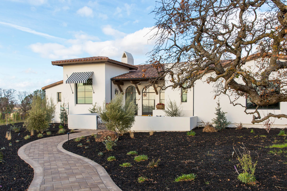 Nestled on over 2 acres within the gated community of Canyon Oaks in Chico, California, this stunning resort-style home is a modern take on Spanish Revival design.