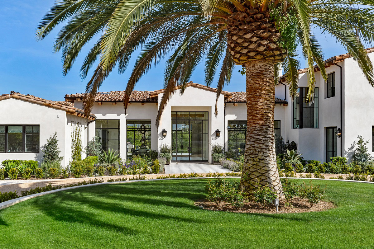 This renovated home on an estate in Rancho Santa Fe, California features traditional Spanish-style architecture with a modern edge.