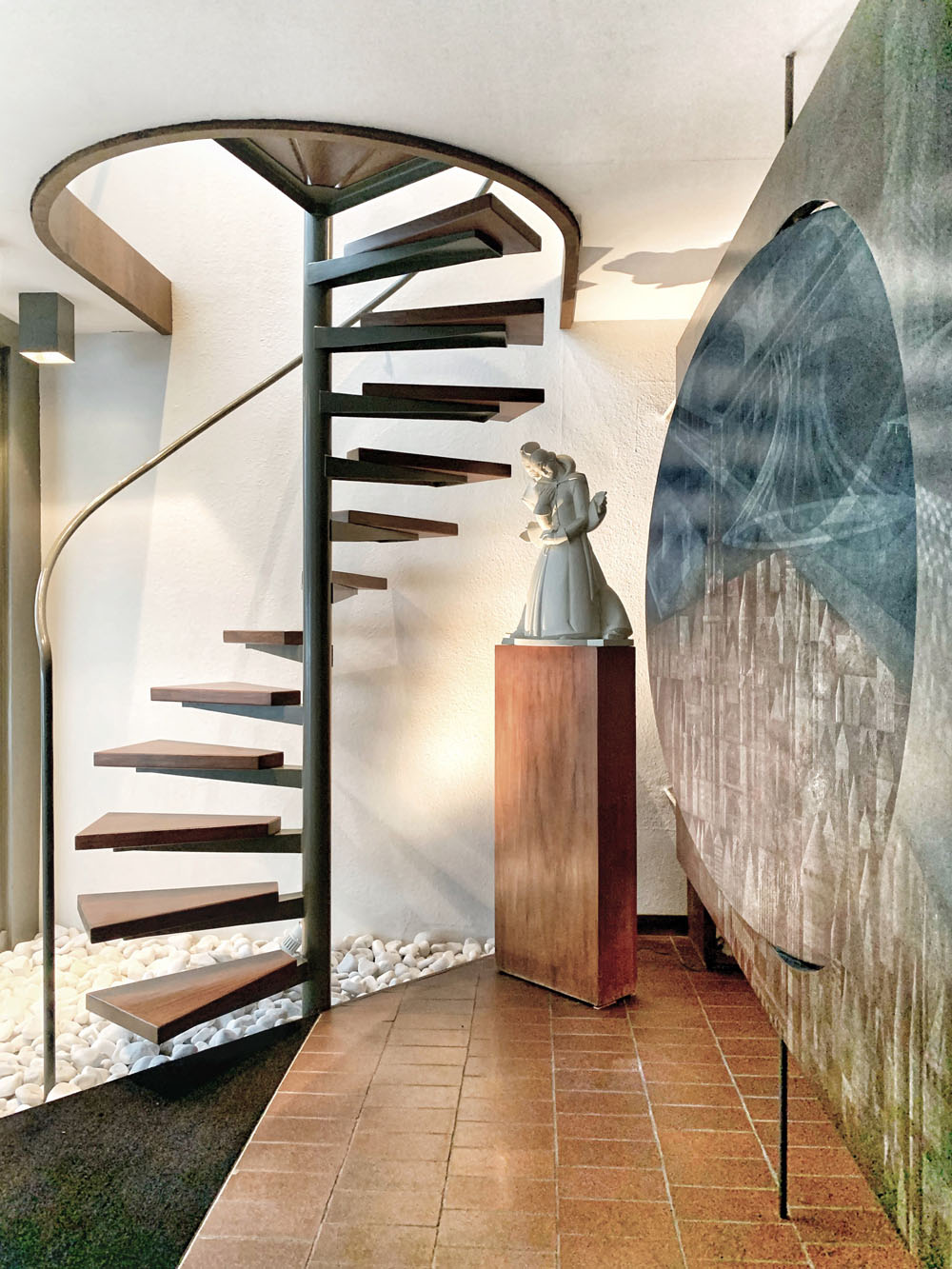 Modernist Home Interior Design Features Two Spiral Staircases